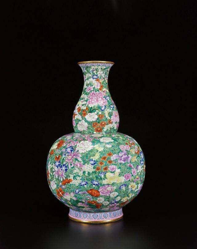 这个珍贵的花瓶就是乾隆朝洋彩万花献瑞图大吉瓶,在一次拍卖中,这个洋彩万花献瑞图大吉瓶一下拍到了2242.5万元,根据相关专家介绍,洋彩万花献瑞图大吉瓶是乾隆年间御窑烧制的,在1860年的时候,被偷到了英国,在这次拍卖之前,洋彩万花献瑞图大吉瓶就曾多次在卖场亮相。