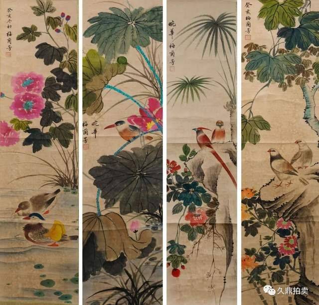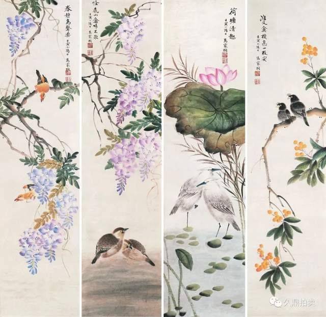 马家桐 花鸟四季梅兰芳 花鸟四联屏