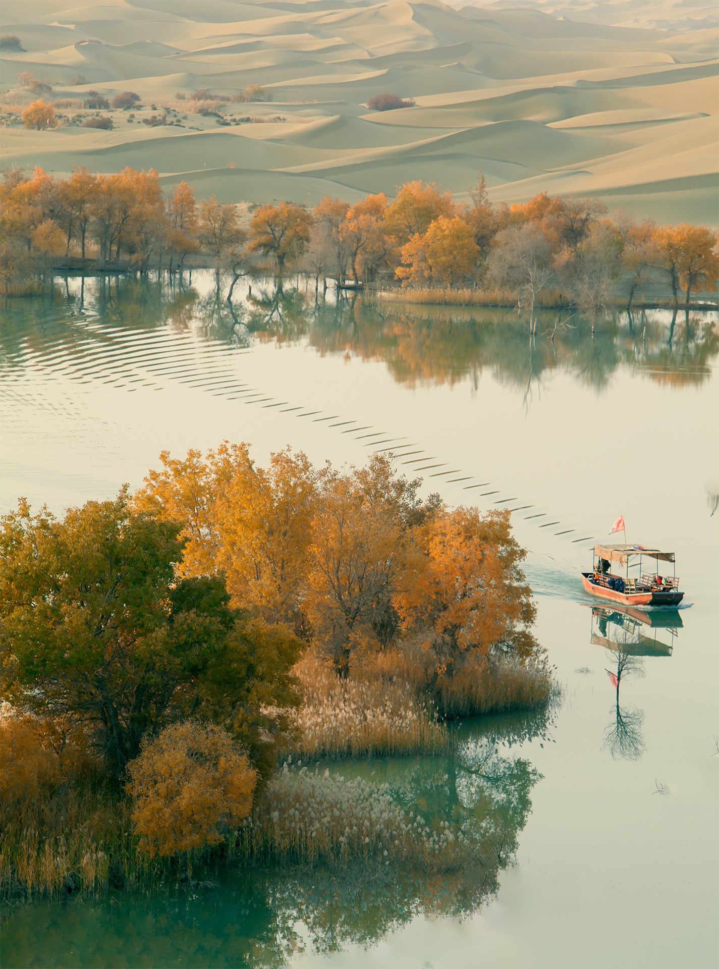 秋天去南疆旅行,正是欣赏胡杨林的好季节。维吾尔语称胡杨为托克拉克,意为“最美丽的树”。胡杨能够在沙漠之中顽强地在沙漠中生长,抗干旱、风沙,耐盐碱。