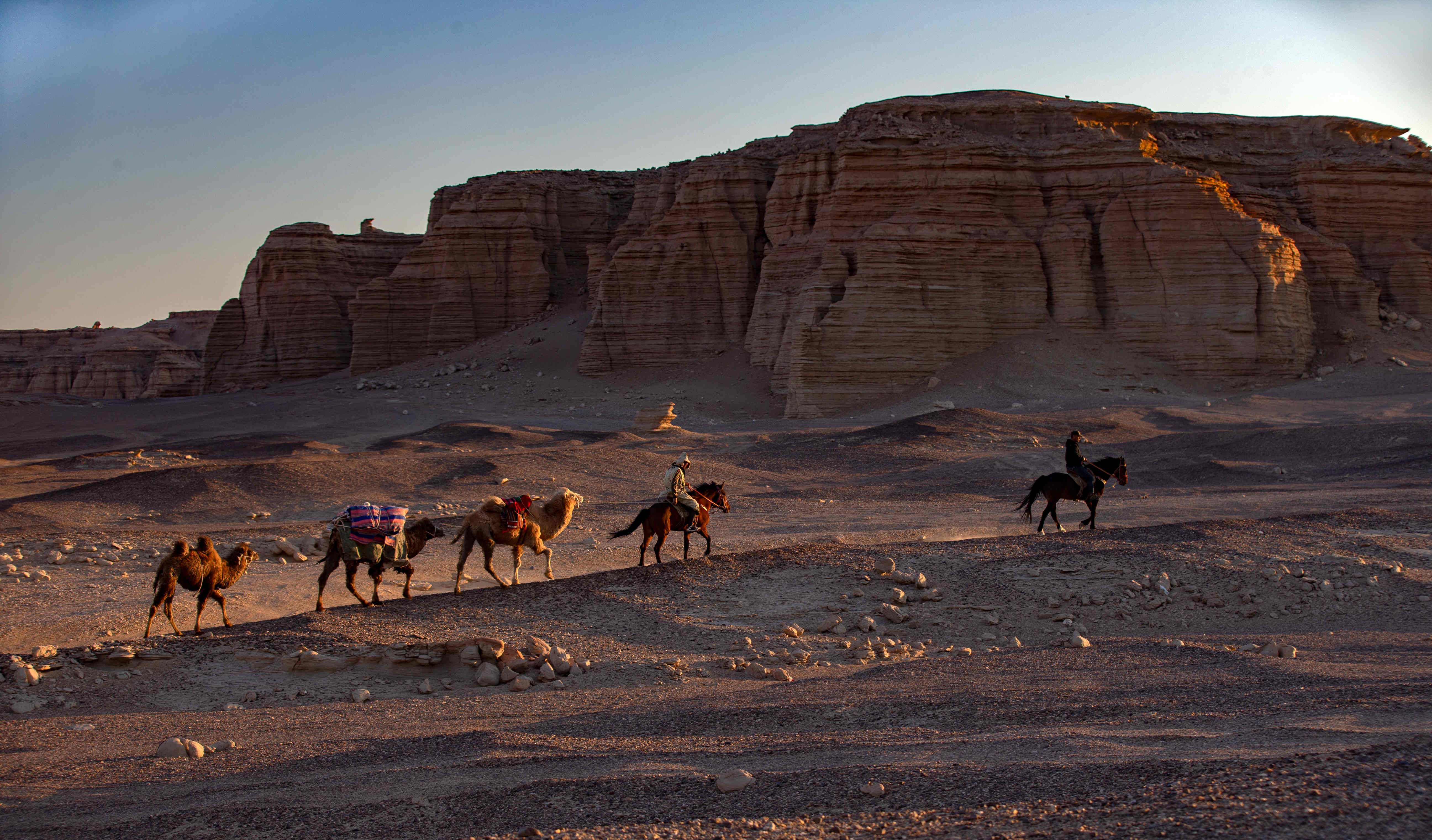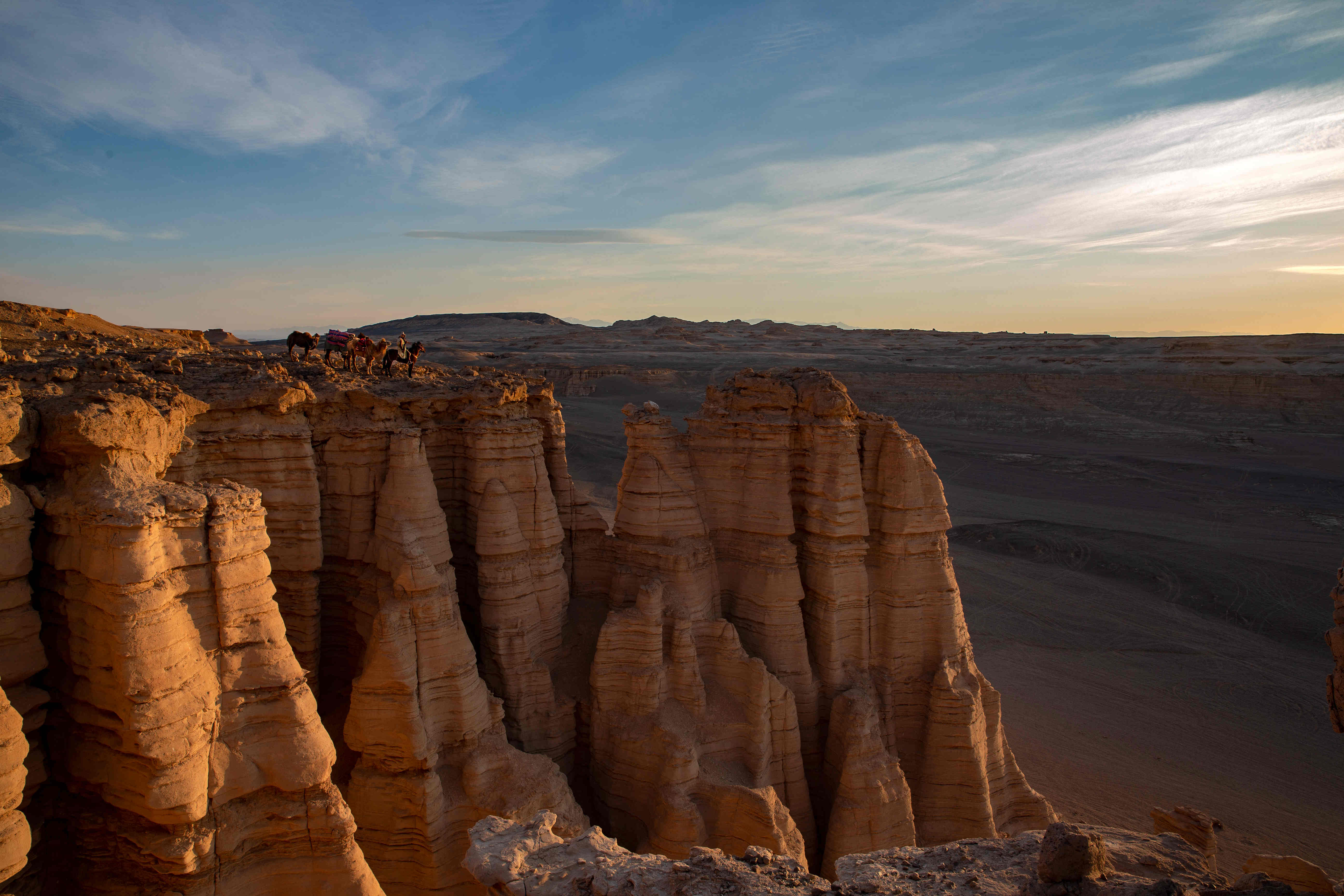 曾经的湖泊已经被漫漫黄沙掩埋,流水与风带来了雅丹地貌,默默注视着这条路上来来去去的人们。