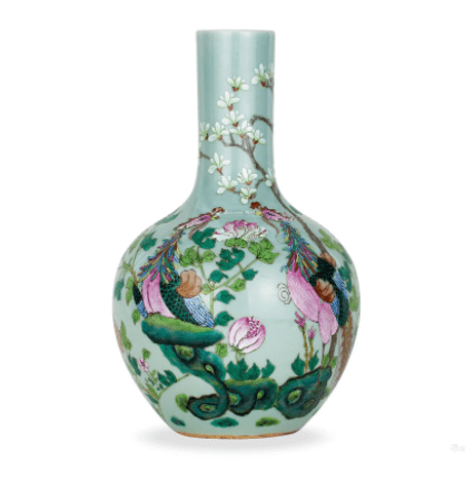 清乾隆 青釉粉彩花卉纹橄榄瓶