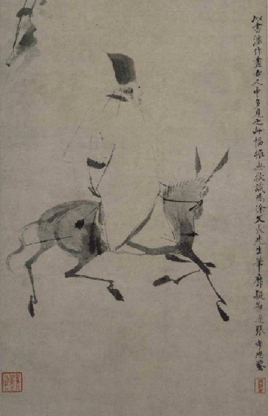 明朝画家徐渭可能受凄苦经历影响,从而画风与常人不同。通过这幅《驴背行吟图》,可看出,徐渭大概是在追求一种“神似形不似”的意境,用现代的话说就是画作已经到达了“得意忘形”的境界,而他的驴前蹄没有一笔,可能是徐渭无意或刻意而为,但此画正是因为缺少了那一笔,但把《驴背行吟图》显得更富含深情,且一度传至今天成为经典神作。有人说徐渭充分利用的古人的“减笔画法”从而融合自己的风格,创出了青藤画派。对此大家如何评价呢?
