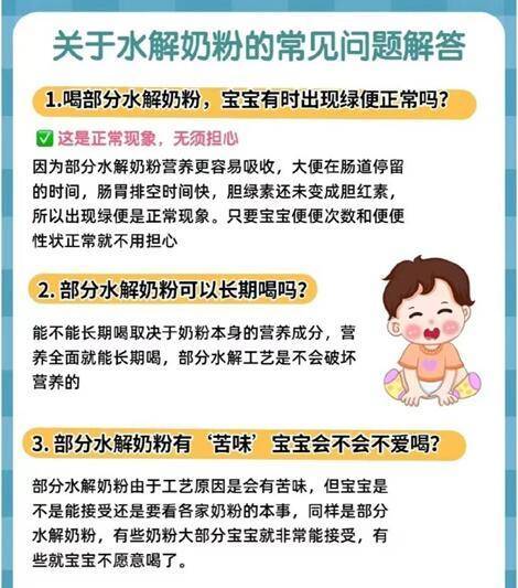 专家建议不要轻易的给健康宝宝吃水解奶粉。这是因为水解蛋白奶粉通过特殊的处理已经失去了天然乳制品应有的香味,甚至还有点苦味。长期摄入这种奶粉不利于宝宝味觉功能发育。对于没有功能性胃肠病或乳蛋白过敏的正常婴儿,如果长期喝含水解蛋白成分的奶粉,虽然好吸收,但是无法更好地锻炼宝宝的胃肠功能,时间久了宝宝的肠胃得不到消化能力锻炼,以后再食用不经水解的普通高蛋白食品,有可能因为消化能力弱而影响营养摄入。