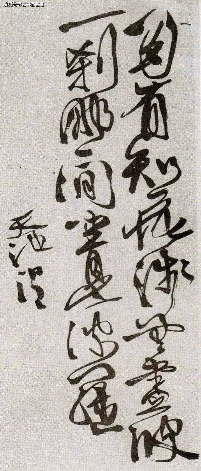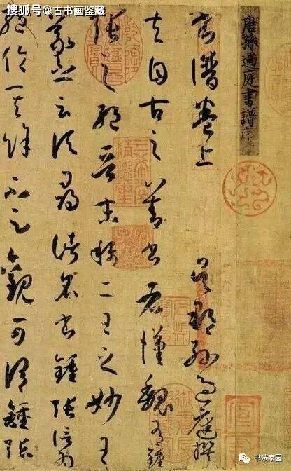 草书发展到唐代,在东晋“今草”基础上又有飞跃发展。草书的字形进一步被打开,草书中汉字的实用信息传递功能进一步被消减,书法的抒情性得到进一步加强。一种与音乐相类似的通过汉字书写表现情感的纯艺术——“狂草”由此诞生。推动草书艺术走峰巅的,正是中国书法史上的奇人——大书法家张旭。唐代大文豪韩愈曾描述曰:“往日张旭善草书,不治他技。喜怒窘穷,忧悲、愉夫、怨恨、思慕、酣醉、无聊、不平,有动于心,必于草书焉发之。观于物,见山水崖谷,鸟兽虫鱼,草木之花实,日月列星,风雨水火,雷霆霹雳,歌舞战斗,天地事物之变,可喜可愕,一寓于书。故旭之书,变动犹鬼神,不可端倪。以此终其身而名后世。”唐人好以书饰壁,相传张旭经常是狂饮大醉,然后举笔“呼叫狂走,乃下笔”。甚至疯狂地“以头濡墨而书”,“既醒自视以为神,不可复得也”。因此他在历史上得了一个外号“张颠”。张旭的草书纵横奔放,气势凌厉,一如李白的诗,弥漫着一股盛唐时代特有的浪漫气息。这里凝聚着他一生的悲欢,也融铸着他一生的愤懑忧郁。时人以李白之诗、裴旻之剑、长史之草书为盛唐“三绝”。