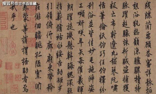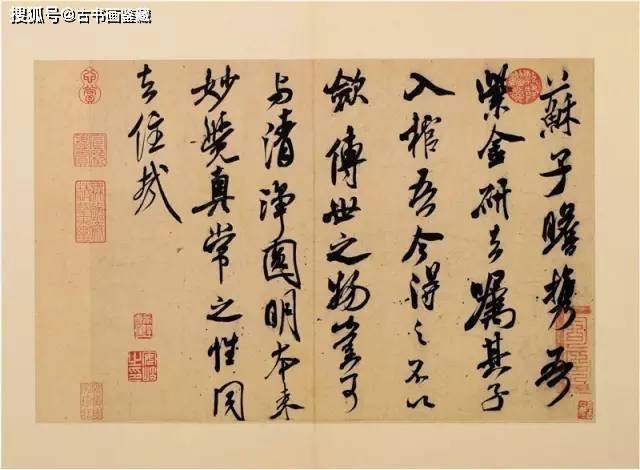 在“宋四家”中,米芾可以说是一个比较纯粹学者艺术家。在学术研究、书画创作、书画鉴定、收藏等领域,都取得了很高的成就。在学术方面,他有《书史》、《海岳名言》、《宝章待访录》等着作传世,是书法研究的专业必读书。在鉴赏方面,历史上有不少名帖,都经他鉴定题跋。他的画,在历史上有着名的“米点”、“米家山水”,是中国山水画法的一种样式。至于他的行书、草书都是出于“二王”,而变化生姿。他用笔非常灵活多变,自称“刷字”,正侧、偃仰、向背、转折、顿挫,八面出锋,用笔沉着痛快,气势超迈飘逸,笔势跳跃,点线俊美,神气完足,把“二王”行草书写出了一种新境界,是书法史上受到追多追捧、粉丝最多的书法家。米芾在书法上的成就,得力于他长期对经典的忠实研究。他曾说:自己是“壮年未能成家,人谓吾书为‘集古字’,盖取诸长处,总而成之。既老始自成家,人见之,不知以何为祖也。” 他对自己书法相当自负。《宋史》载:“米元章初见徽宗,命书《周官》篇于御屏。书毕,掷笔于地,大言曰:一洗二王恶札,照耀皇宋万古。”