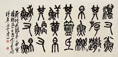 吴昌硕是中国近代书画大师,诗、书、画、印四绝。他的写意花鸟在近代画坛拥有很高地位,为海派重镇。他的篆刻在大胆吸收秦汉民间刻石资料的基础上,天机独造,印风浑厚雄放,将清中期以来的篆刻艺术世俗化倾向推向一个新高峰。他的书法,不蹈前人轨辙,出古而开新,任情率意,笔墨烂漫老成,尤其是以斜势、破峰作石鼓大篆,气势浑莽,开篆书新气象,有发韧启源之功。其行书用笔率情,笔势翻飞,波澜天成,气势凌厉,亦于二王、唐宋畦町之外,更开法门。