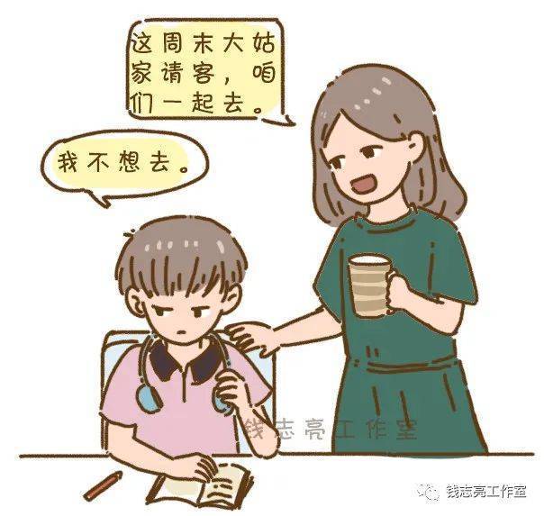 还有一次,孩子不愿意去亲戚家吃饭,她觉得孩子怎么长大了就变了,一点都不听话,开始苦口婆心劝孩子去,结果孩子听得心烦,母子俩吵了一架。