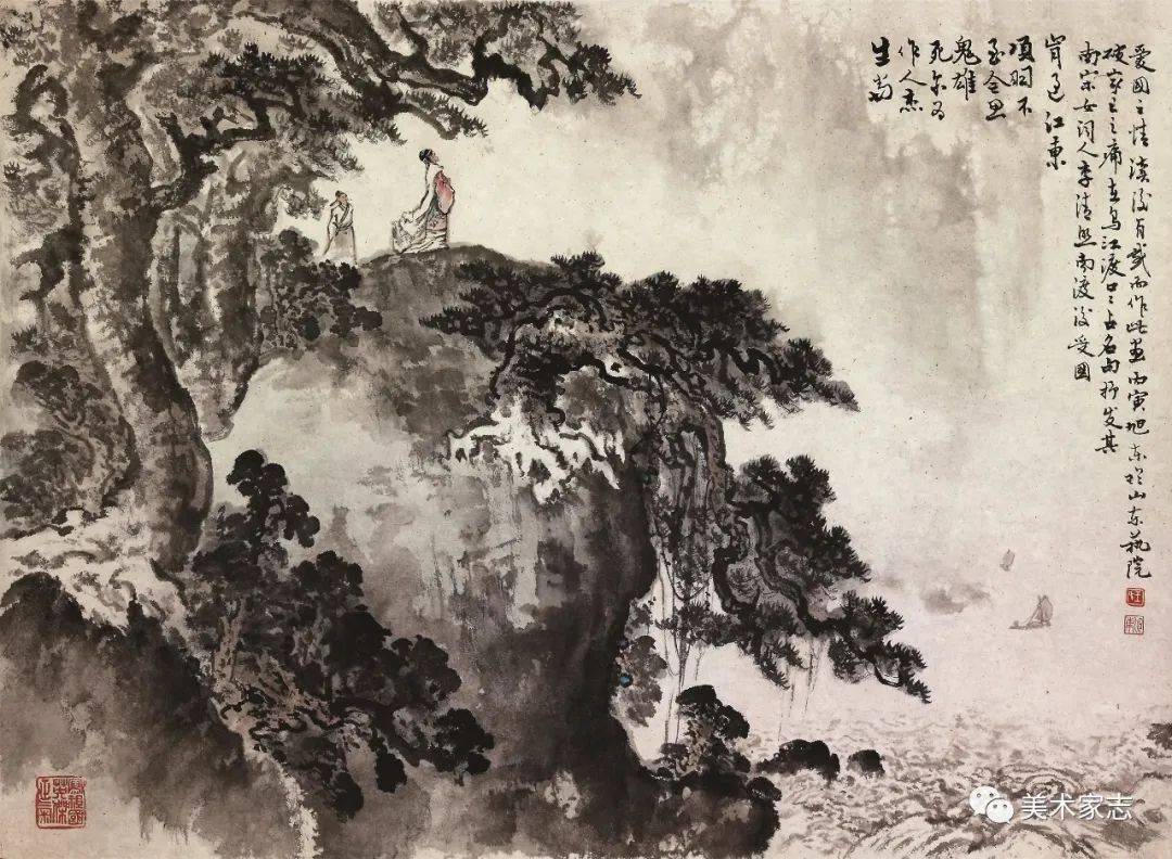 辛弃疾《南乡子 · 登京口北固亭有怀》词意创作《千古兴亡多少事》 85X50cm 1990年