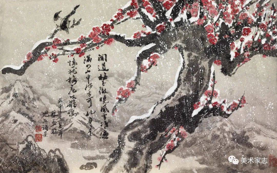 根据宋 · 陆游《梅花绝句》诗意创作(王旭东与夫人杜年芹先生创作后对诗句有改动) 80X50cm 1992年