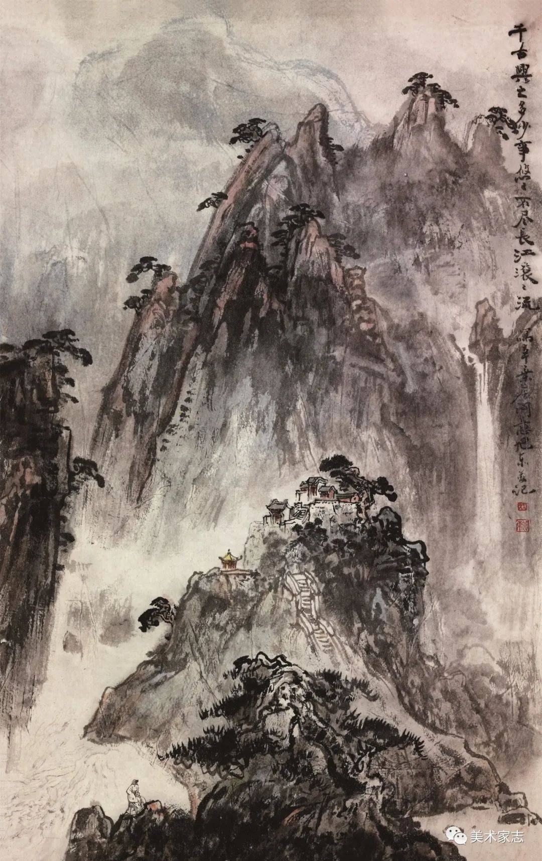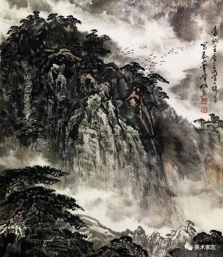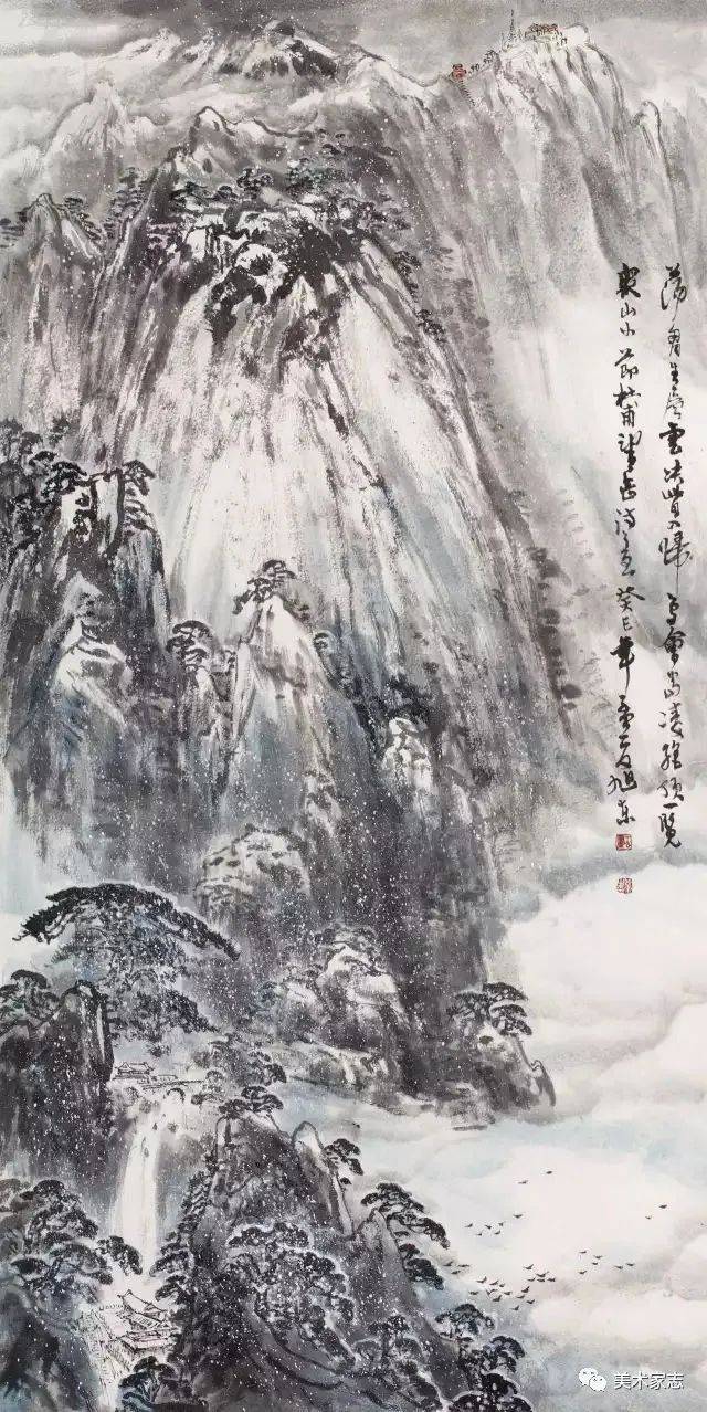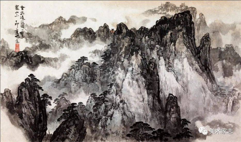 杜甫《望岳》诗意创作《会当凌绝顶》 88X50cm 1987年