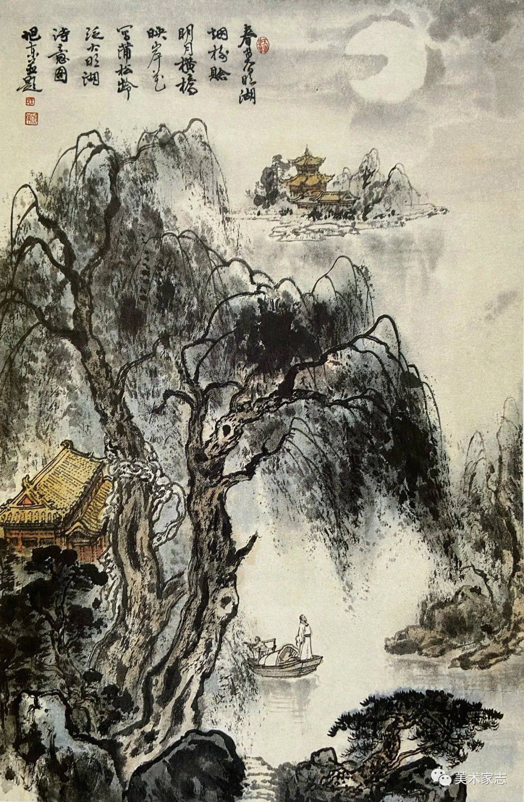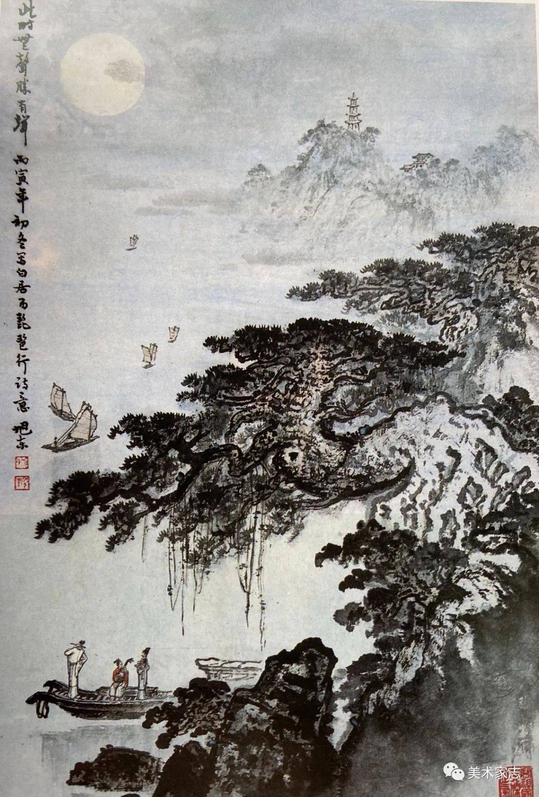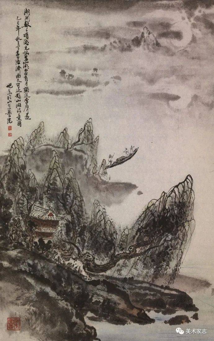 李白《陪从祖济南太守泛鹊山湖三首》诗意创作 85X50cm 1989年