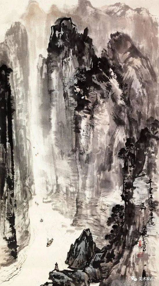 李白《早发白帝城》诗意创作之二 《千里江陵一日还 》 90X50cm 1987年