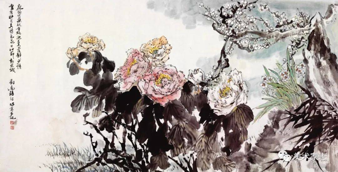 刘禹锡《赏牡丹》诗意创作136X68cm 1998年