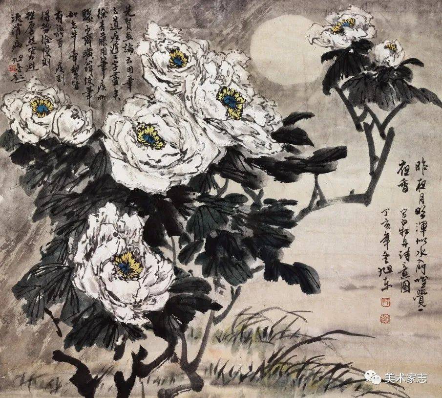 韦庄《白牡丹》诗意创作 《昨夜月明浑似水,入门唯觉一庭香》85X85cm 2007年