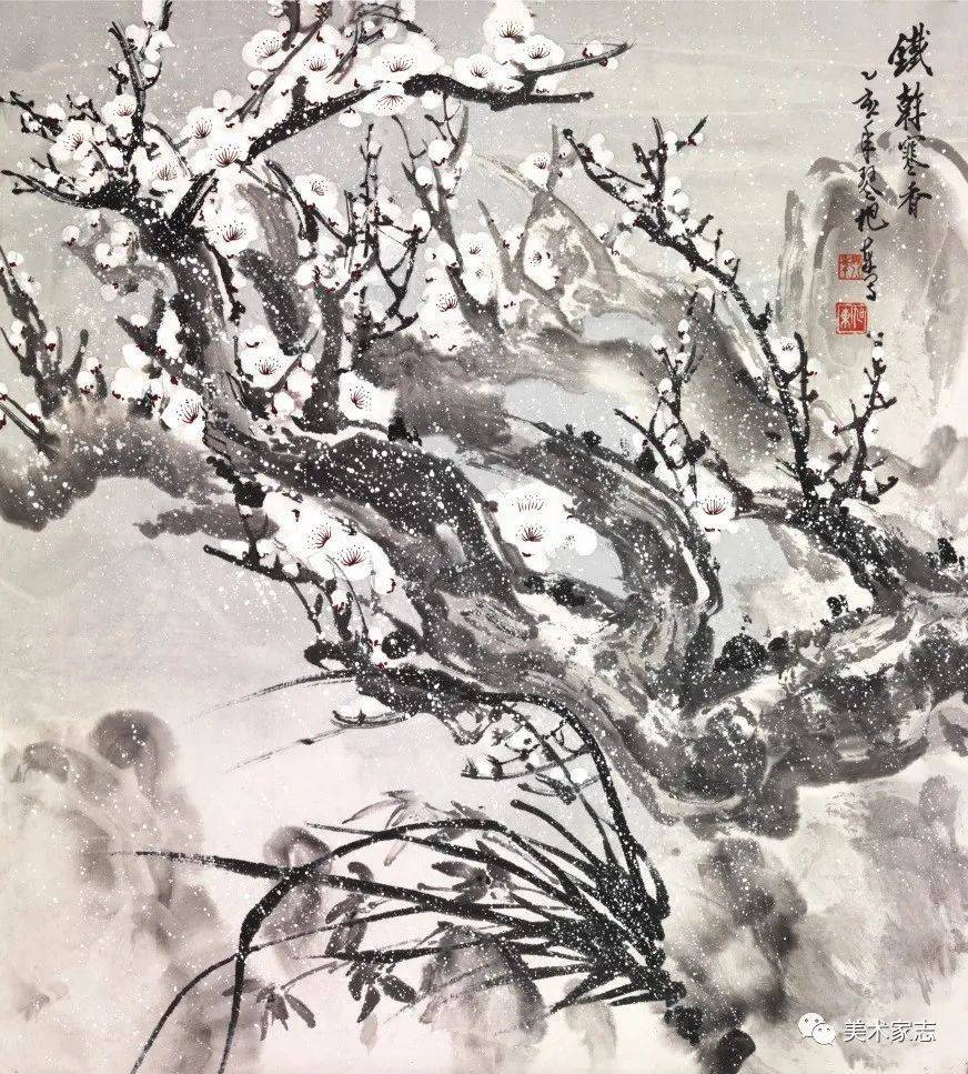 恽寿平《梅花》诗意创作《铁干寒香》 68X68cm 1995年