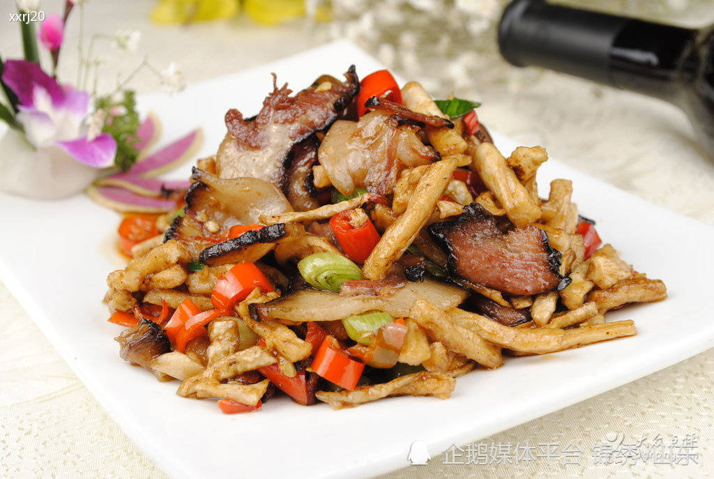 食材:老腊肉150克 老南瓜300克 姜片、蒜片、青椒圈、小米椒节、盐、味精、色拉油各适量。
