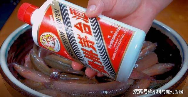 5.下面开始腌制,先倒入小半碗高度白酒,抓匀腌制10分钟,起到去腥增香的效果。