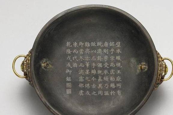 清朝的雍正皇帝钟情于收藏名贵的砚台,这和雍正皇帝一生偏好书法不无关系。雍正当皇子时,就写得一手好字,得到父亲康熙皇帝的嘉奖。康熙皇帝赏赐大臣显贵的墨宝,很多由雍正皇帝代笔。康熙皇帝死后,其入葬的陵寝名“景陵”两字,亦由雍正皇帝书写。根据清代内务府造办处遗存的档案和故宫收藏的清代实物,雍正皇帝收藏使用过的砚台,材料质地多样,有瓦、铜、汉玉、白玉、端石、徽歙石等,端石砚又有紫、绿、黑、蓝颜色之分;砚台形状则有方形、圆形、长圆形、荷叶形、天然形等。好马须配好鞍。雍正皇帝对盛放砚台的盒子也十分讲究,用材制作,务求其精。北京冬天天寒,研墨不易,雍正皇帝还对一种用火加温的铜砚发生兴趣,认为在铜砚底部生火加热不妥,多次下谕旨命令造办处工匠改进。砚台中最别致者为暖砚,因多用铜做,称为铜烧暖砚。故宫博物馆藏有乾隆年间珐琅盒暖砚。……雍正十年有一道上谕说:“看前做过的暖砚,其形俱高,因火在底下,不得不如此做高。何必将火做在砚底?砚旁另做一炉,炉下安足,上安铜丝罩,使火气透入砚底。砚既然可热,炉亦可以烧香。”二月十八日传旨,九个多月后的十一月二十七日始做成两方,然而进呈后雍正不满意,说:“暖砚做得高了,再做时矮些。其盛水处亦深,再做时高矮留一指。”翌日又传旨:“暖砚做的不如意,火炉下的如意脚不好,或悬着,尔等酌量改做。”十二月二十八日始竣工,足足费时十个月,可见雍正对暖砚的重视。”下面为清高宗43年铭的璧水暖硯照片,大家上眼。