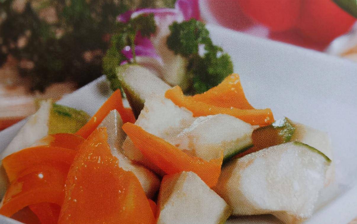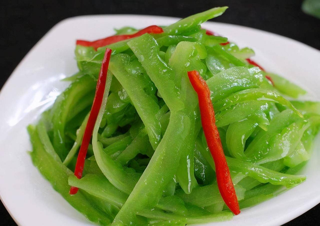 材料:去皮丝瓜250克,黄椒150克调料:盐2克、味精1克、醋、香油适量