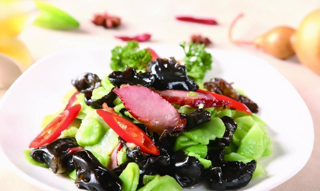 配料:青笋500克,木耳150克,红辣椒20克,姜15克,油适量,盐1茶匙,糖0.5茶匙,生粉1茶匙