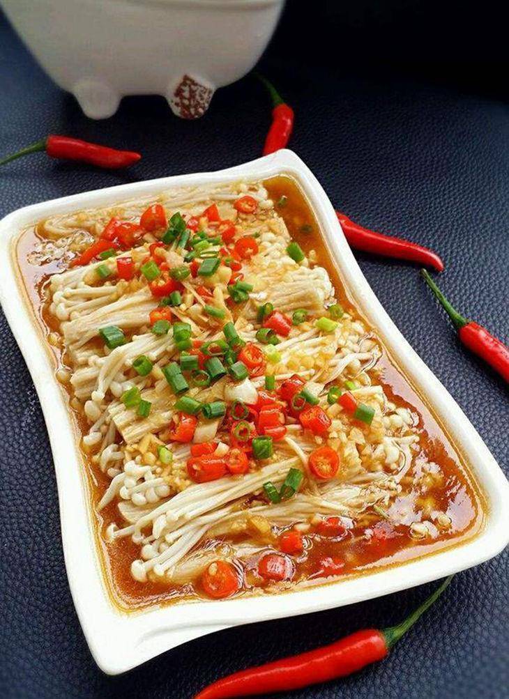 材料:金针菇1个,老干妈2勺,盐1勺,葱2根,生抽1勺,陈醋半勺,白糖半勺