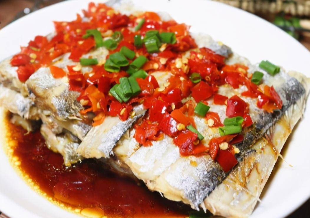 配料:带鱼250克,油适量,盐适量,料酒适量,蒜香剁椒适量,姜适量,白糖适量,葱适量,适量清蒸鱼酱油