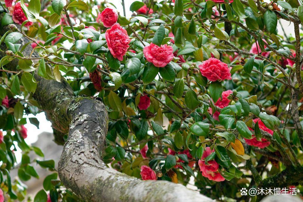山茶花在冬末初春时节开花,更早的话,11月份就开始开花了,一直持续到来年的3月份左右,才会逐渐凋谢,因此花期不短。红艳艳压满枝头,煞是好看。