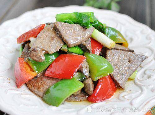 食材:猪肝,植物油,盐,葱,姜,蒜,淀粉,青辣椒,洋葱,酱油,红辣椒。