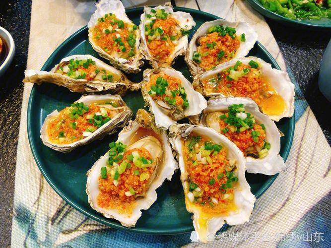 (3)烤盘上均匀地摆入生蚝,再将调好的蒜蓉料汁,依次淋在生蚝上面,然后放入烤箱中,200度烤10分钟,出锅盛入盘中。