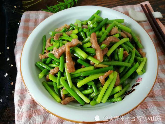 食材准备:蒜苔、里脊肉、紫皮蒜米。