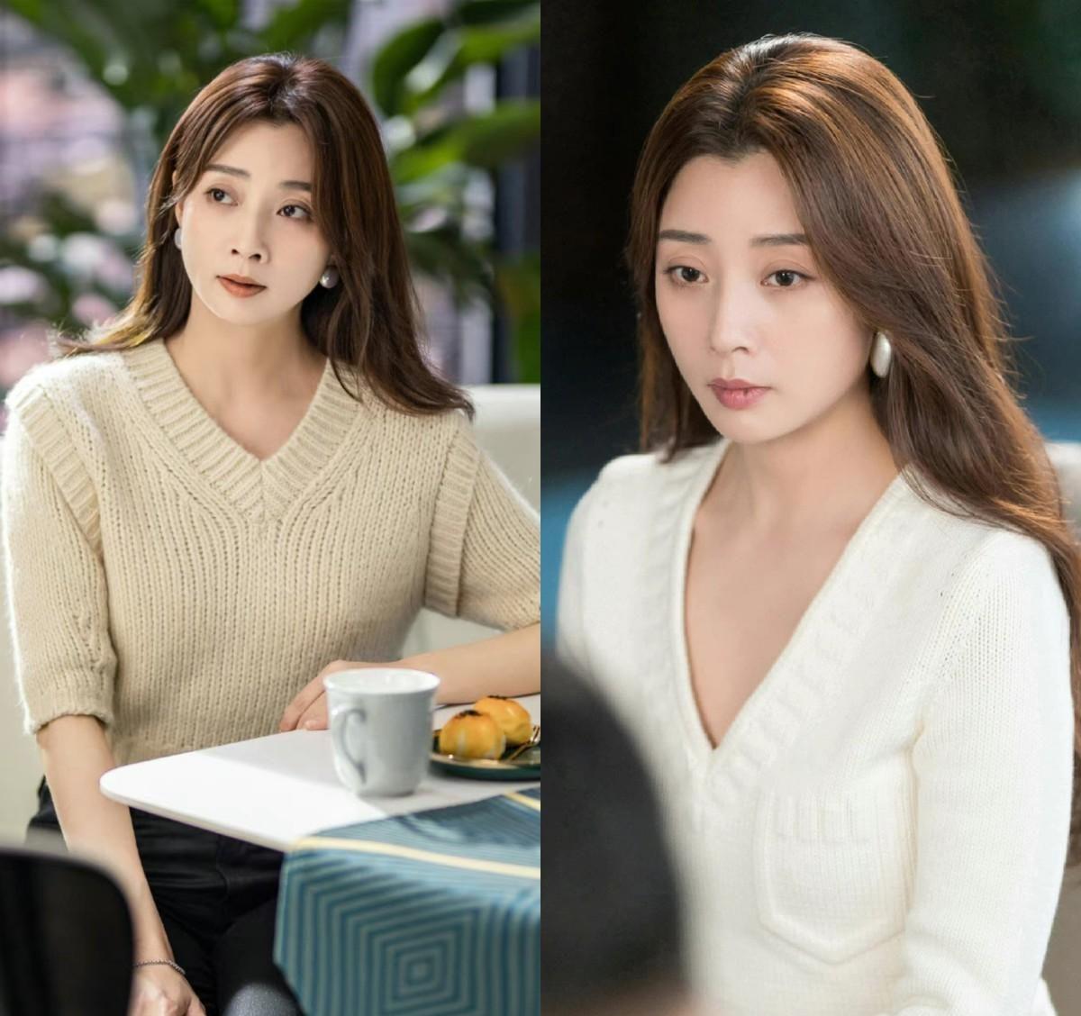 露出“脖子”让脖子看起来更加纤细优雅,不仅可以拉长领口,还可以防止脖子显得沉重。中年女性可以选择V领、U领等领型的衣服,既能显领口又不会太暴露。
