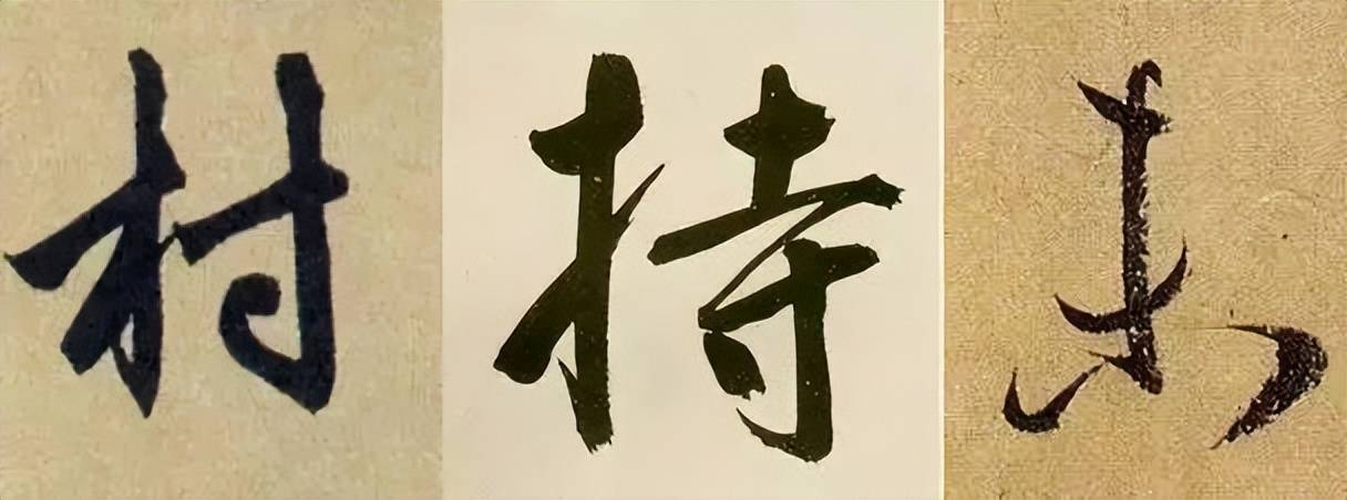 行书结构的变化,体现在行书快写中次要笔画的省略和简化,或借用草书的常见符号而变形,也体现在因为连写的顺畅而改变了笔顺,或因为抒情的需要和成行成篇组合的生动变化而夸张了字形的大小和局部的收与放。行书显得形态多变,体势斜侧,大小伸缩,率真洒脱。