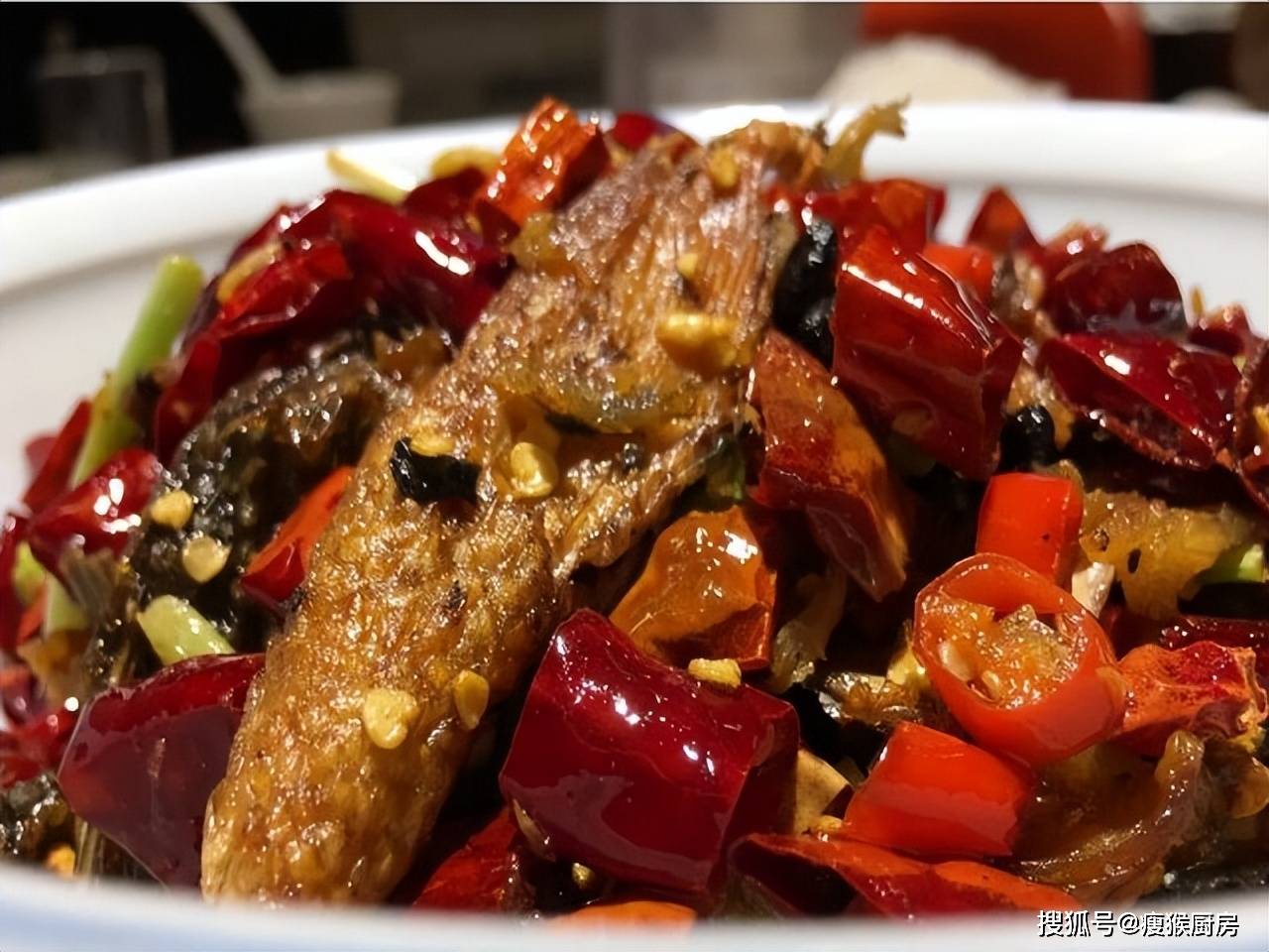 火焙鱼是株洲的传统名菜,从名字上就可以看出,这道菜不是煮也不是炒,而是在锅里焙干,这种做法做出来的鱼不仅保留了活鱼的鲜、干鱼的爽,还保留了咸鱼的味,吃起来味道更香,鱼肉也更有嚼劲。