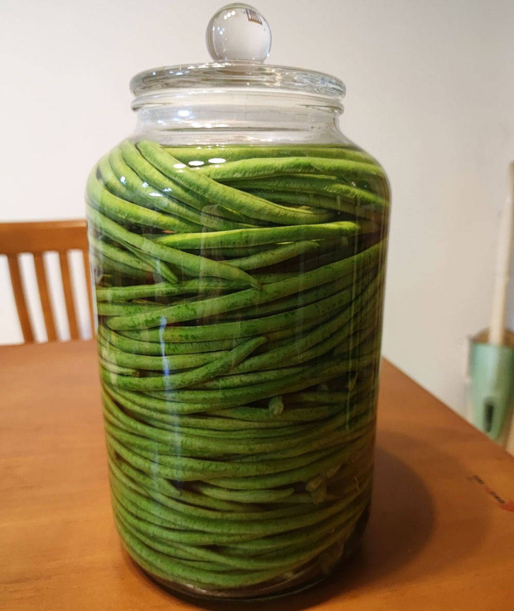 腌制食物,是过去的人们为了保存食材经常要用到的方法,人们在一些食材应季的时候,将多余的部分腌制起来,这样可以留到秋冬季节里慢慢吃。很多食物都可以腌制,而我家每年雷打不动要腌的一定有两样,一样是冬天的酸白菜,还有一样便是这夏天的酸豆角。这两样食物制作的原理是一样的,都是通过盐水浸泡,隔绝氧气,利用乳酸菌发酵产生酸味。