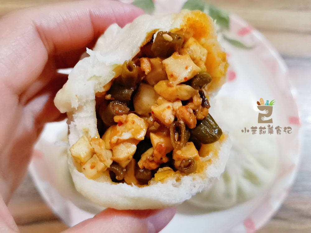 7、想要蒸出的包子暄软不塌陷,一定不能少了二次醒发的步骤。待包好的包子各个膨胀后,再将火打开,上汽之后蒸十五分钟即可关火。