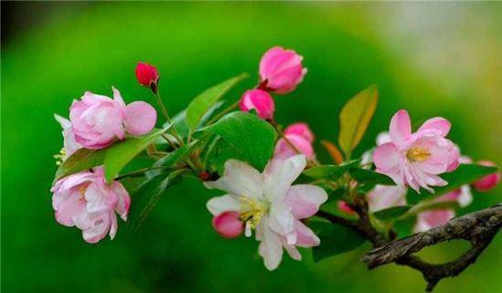 海棠尊贵而有气度,娇艳而不妖娆,自有风骨,盛开的时候,满树满树的洁白、艳红、粉色,钩织一个多彩的世界,芬芳淡淡,回味绵长。含羞的海棠,虽不轻易吐露芳心,但它嫣然一笑竹篱间,已让满山桃李显粗俗。