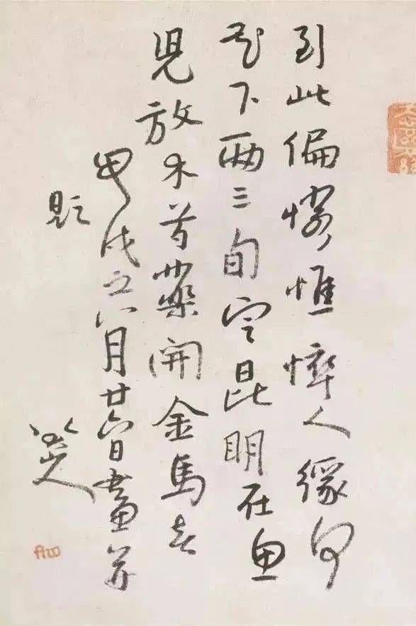 李白所书《上阳台帖》,落名“太白”,写得近似“大二日”,很象“大大白‘,很有启发性。艺术品须偶一望去易生错觉方有趣。若用此笔法画山水、花鸟,是为最高格。