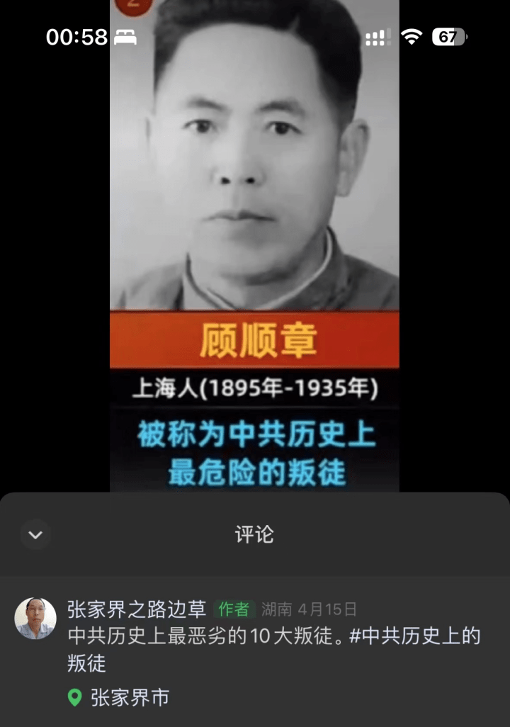 搜寻几日后,石女士发现,大部分自媒体账号发布涉及外公的视频内容基本相同,“自媒体自行排列了中共最恶劣十大叛徒,并配上简介、姓名等,将其制作成视频。其中,当出现顾顺章一栏时,对应的照片却是我的外公何克希年轻时照片,并配文‘中共历史上最危险的叛徒’。”