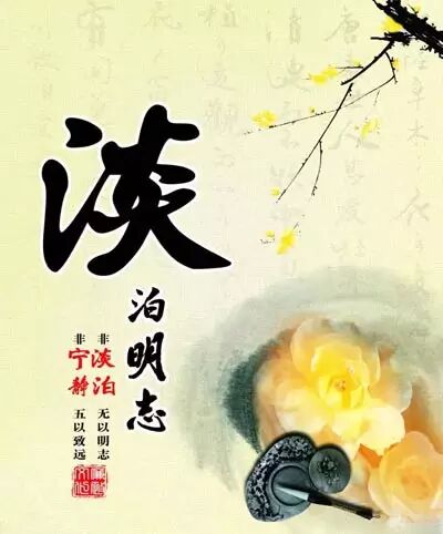 淡泊明志,此句最早出自西汉初年刘安的《淮南子:主术训》。诸葛亮的《诫子书》也有引用:“非淡泊无以明志,非宁静无以致远。”“淡泊”是一种古老的道家思想,《老子》就曾说“恬淡为上,胜而不美”。