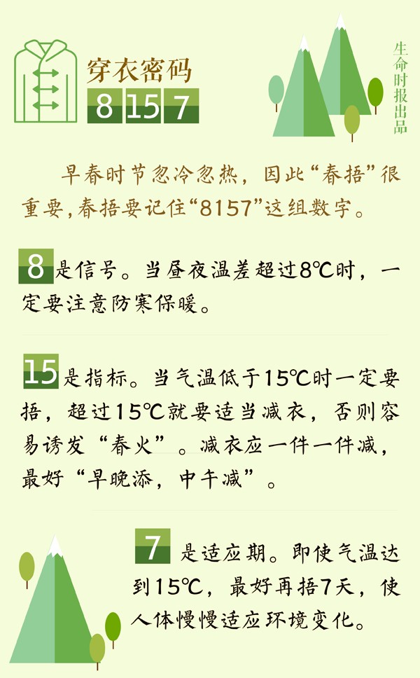 早春三月,大地渐渐脱去冬天的外衣,开始迎接万物生发的春天。此时,季节交替,乍暖还寒,一方面人们容易生病,另一方面也是养生的好时机。中国中医科学院研究生院教授杨力,从衣、食、住、行四方面,为大家总结出一套“换季养生密码”。