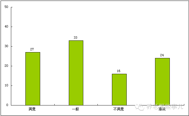 虽然社区居家养老方式迎合市民需求,提供的服务亦较贴近老年人需要,但政府对于社区养老的推广工作,表示“满意”的受访市民不足三成,仅为27%;评价“一般”的居多,为33%;而且还有24%的人表示“难说”。在调查中,不少市民明确表示在居住社区里并未见到或听说过有关养老服务。看来,目前社区居家养老服务工作与满足市民需求、期待还有较大距离。