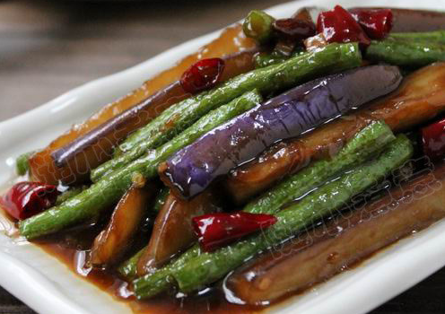 ⑤ 综合法:将茄子切好后随即放入水中浸泡,水中加入少许醋,锅内加油烧热,茄子从水中捞上来后入锅高温快炒,炒时不加汤,反复炒至全软为止,再加各种调味品,这样茄子不变色也不会发黑。要领是:浸水、高温、快炒!