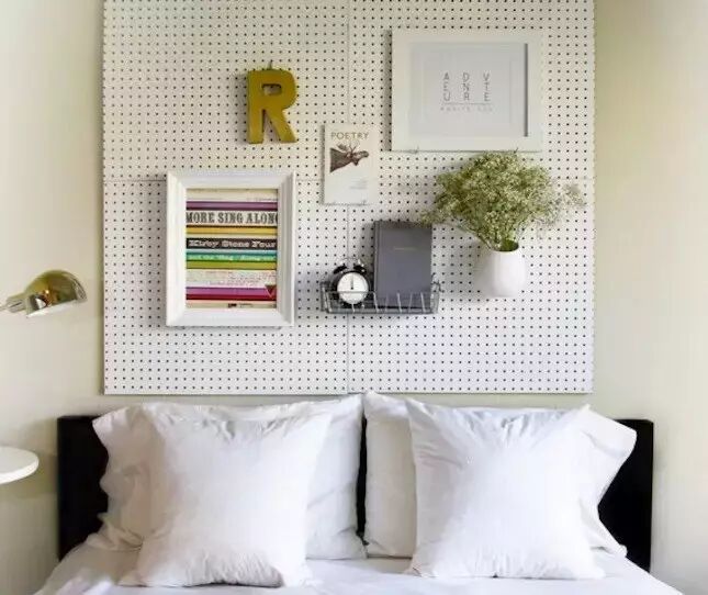 洞洞床头板,当你生活在一个狭小的空间,会明白床头背景很重要,一个闹钟,一本书,一盆花多么明智的装饰。