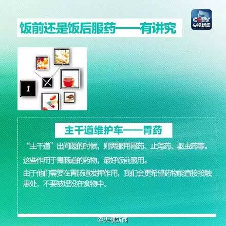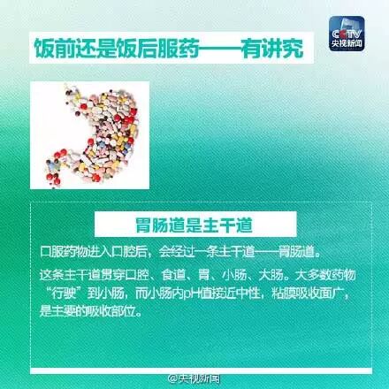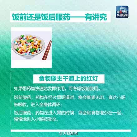食物就像红灯,控制药物行进。如果要药物快速发挥作用,可饭前服用;胃药、止泻药等作用于胃肠道药物,也应饭前服用;但是,阿司匹林等对胃刺激较大药物,最好饭后服用。药物是否与食物混杂,决定着在小肠吸收的快慢。还有些要求睡前或晨服,要询问医师哦!