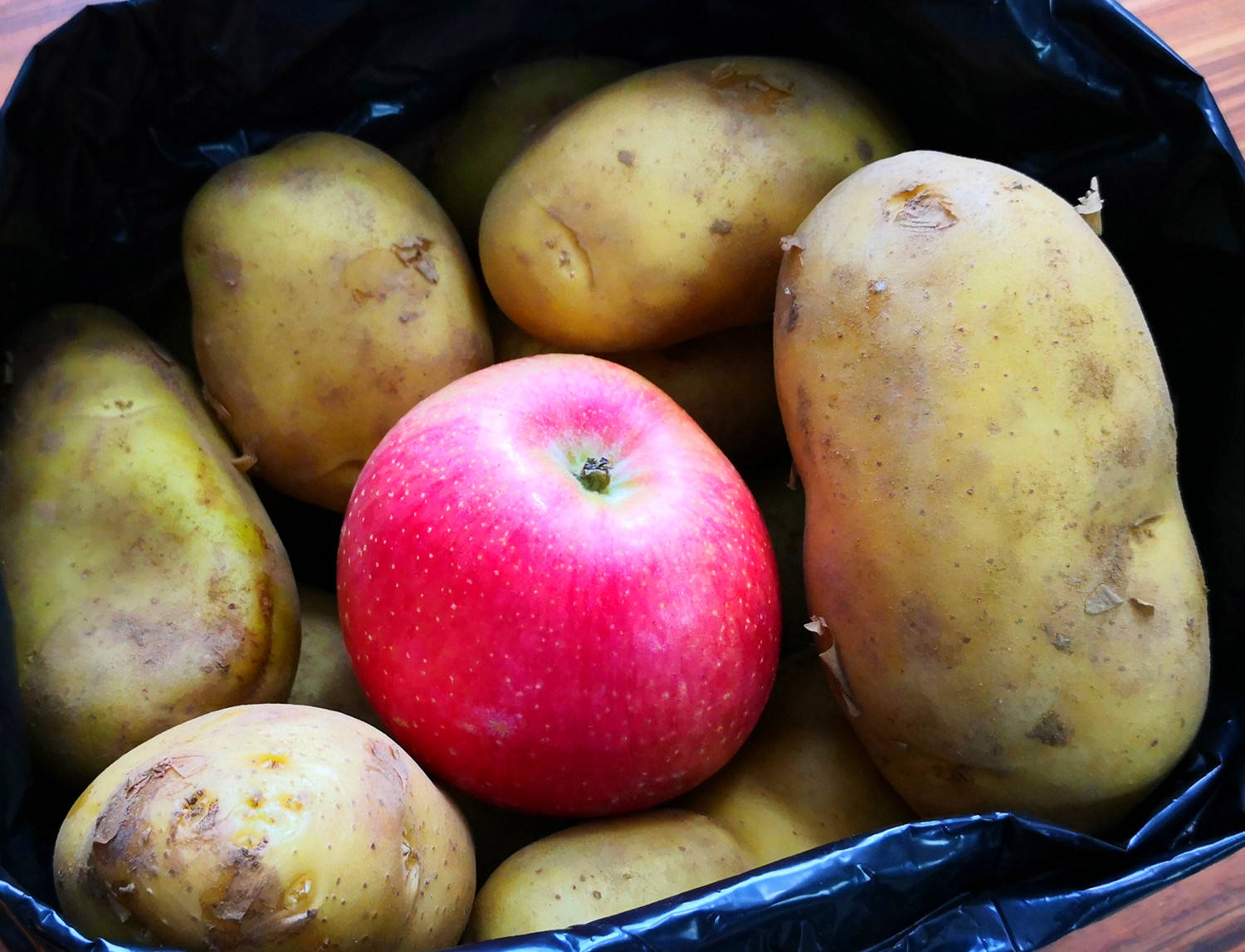 ,这样保存土豆适合于不是太多的土豆,具体操作如下:取一个纸箱子,将土豆放入,土豆千万不要清洗,带泥放入到箱子里,然后根据土豆的多少加入几个半熟的苹果,如果土豆较少放一个就可以了,土豆如果较多就多放几个,然后再将箱子放到干燥、透风、阴凉、避光处保存即可。