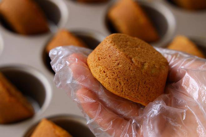 8、出炉之后,用牙签把月饼立起来降温,温热就可以打包了。我们的蛋月烧月饼就做好了。这个月饼月饼的口感是介于蛋糕跟曲奇之间的口感,皮不会很甜腻。酥酥软软的口感。