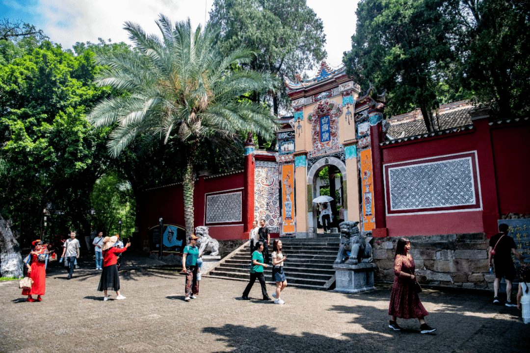 游客在位于重庆市奉节县的白帝城参观游览 / 唐奕 摄
