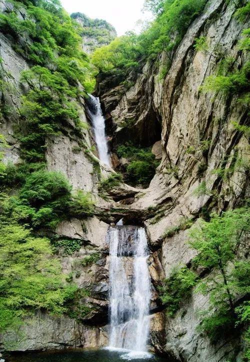 太平峪的仙鹤桥瀑布尤为值得一看。仙鹤桥瀑布中间被自然分为了两段,形成了一个天然石桥,想要欣赏它的美景,就要通过一段百米高的高空栈道,十分惊心动魄。