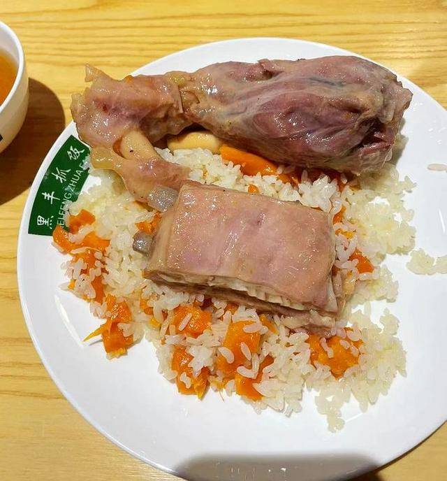 抓饭,这是我们习惯的叫法,就是外地人说的新疆羊肉手抓饭,这是排骨和羊腿把子抓饭,一份抓饭排骨和羊腿都吃了,你见过这么吃抓饭的吗?猜猜一份多少银子?