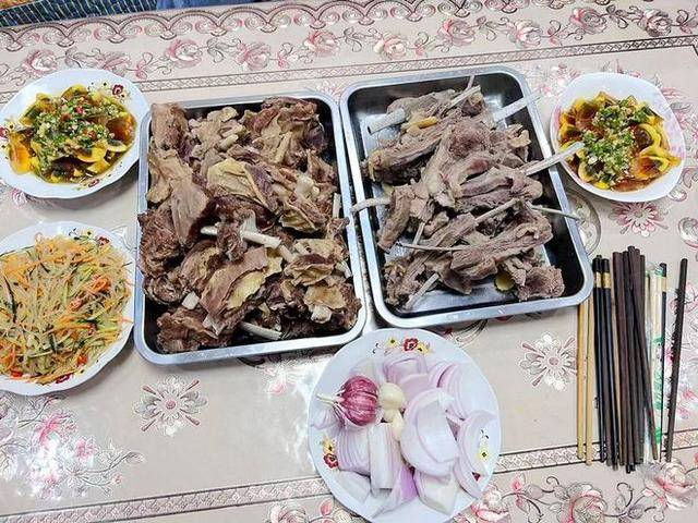 在来看看,这是两个人一边吃,一边在尽情的嗨聊,豪爽大气的新疆吃法,你见过吗?